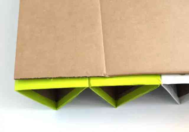 做好適當(dāng)數(shù)量的三角桶后,將三角形的一邊故此能夠在同一塊紙板上連起來,多做幾條。