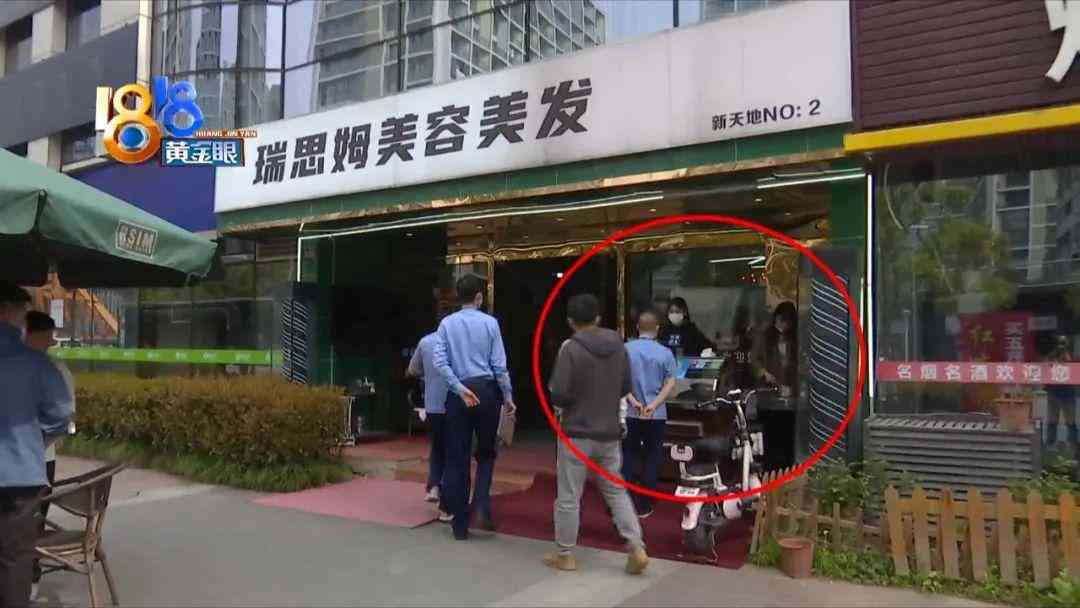 記者提出能否看一下藥水,陸店長剛叫人拿出來,理發(fā)店里一名工作人員突然情緒激動起來。