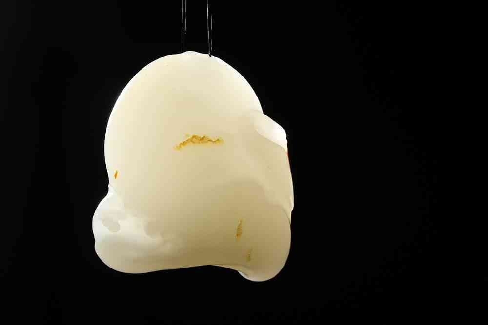 雙鶴鶴首相對,身體曲線優(yōu)美,喙長、頸長的特點(diǎn)被刻畫的淋漓盡致,一鶴身漸隱于素皮之下、一鶴身漸隱于白肉之中,遙望、相對、伴隨、不離。