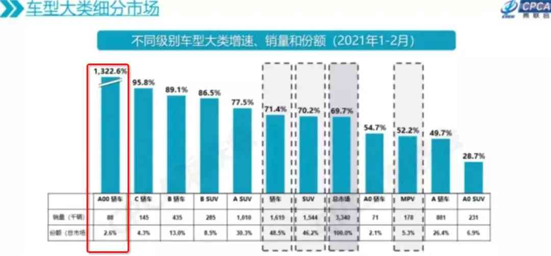 今年2月,純電動(dòng)汽車銷量同比增長(zhǎng)616.1%,其中A00級(jí)純電動(dòng)車轎車同比增速達(dá)到了1804.1%。