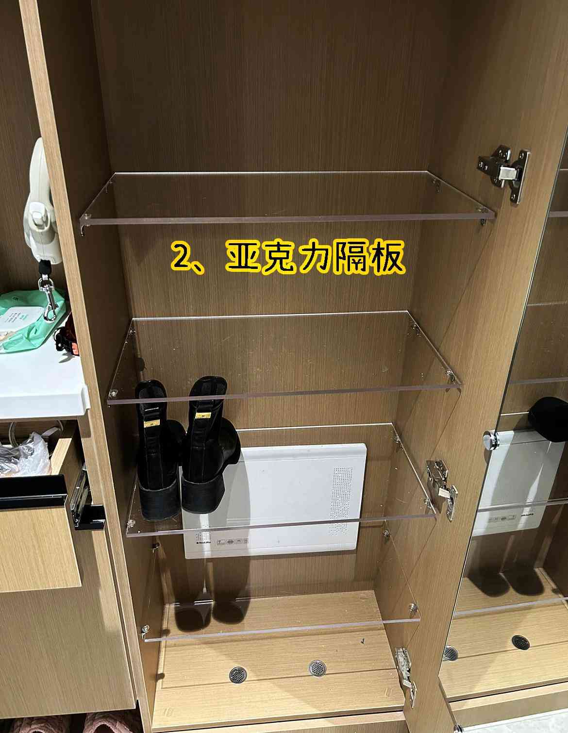 有時候家里柜子內的空間設計不合理,導致空間浪費,那么利用亞克力隔板就可以輕松實現(xiàn)空間的合理利用,借助免釘隔板托,實現(xiàn)柜內的分區(qū)自由。