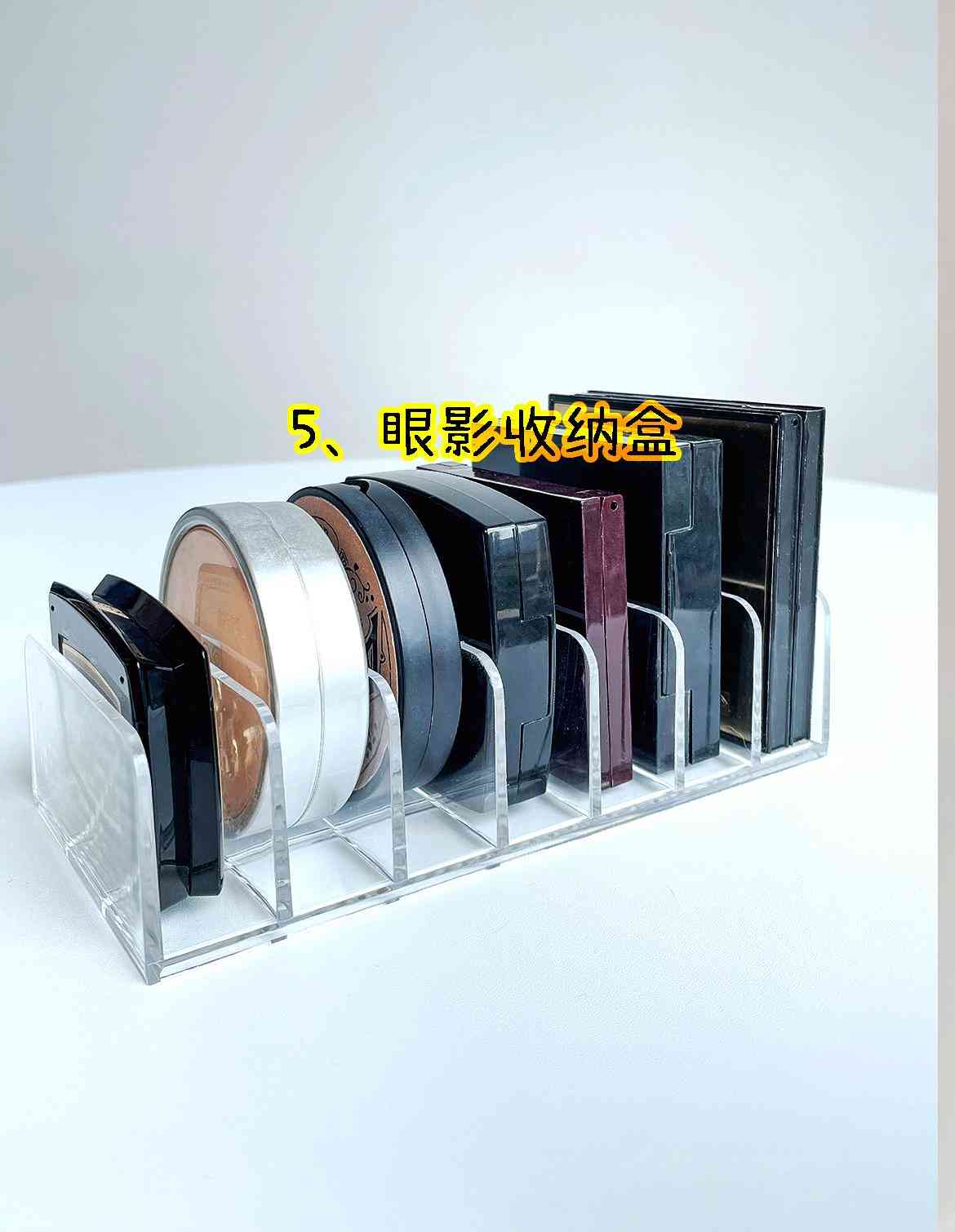 而這個透明的眼影收納盒,就可以把這些扁形的化妝品統(tǒng)一收納起來,亞克力材質存在感很低,所以可以讓桌面看起來更加的清爽,而且拿取的時候也方便很多。