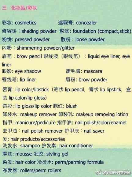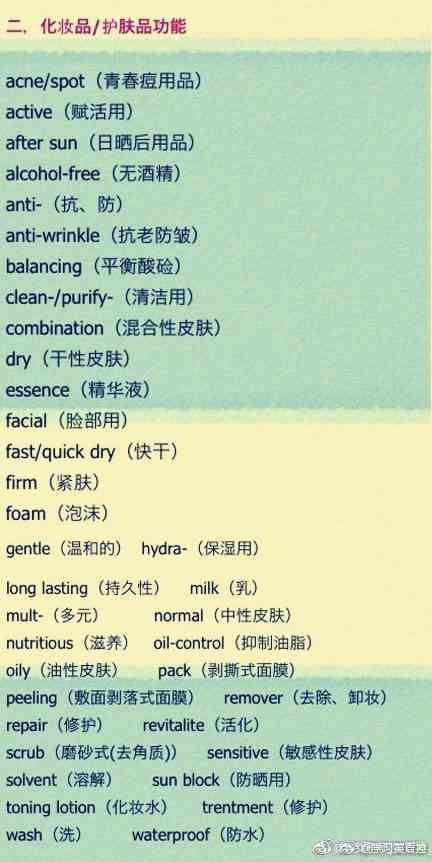 中英化妝品對照表(中英化妝品對照表)