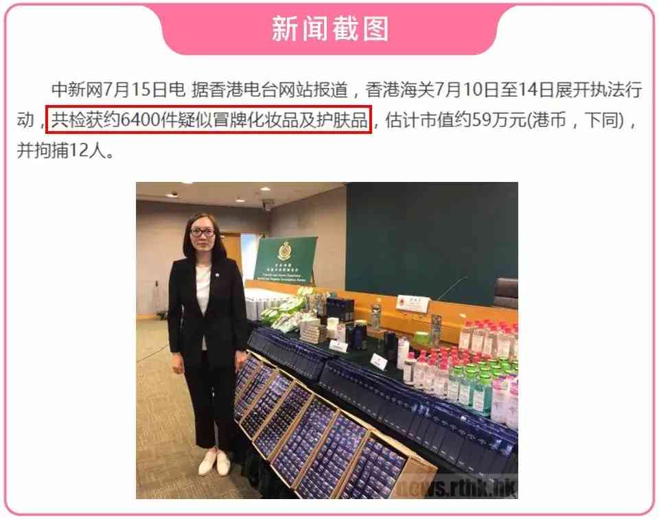 今年 7 月 15 日,被譽(yù)為化妝品購(gòu)物天堂的香港就被爆出,檢獲約 6400件 疑似冒牌化妝品及護(hù)膚品。產(chǎn)品包括化妝水、面霜及防曬乳液等,涉案店鋪集中在旅游點(diǎn),受害消費(fèi)者或多為游客。
