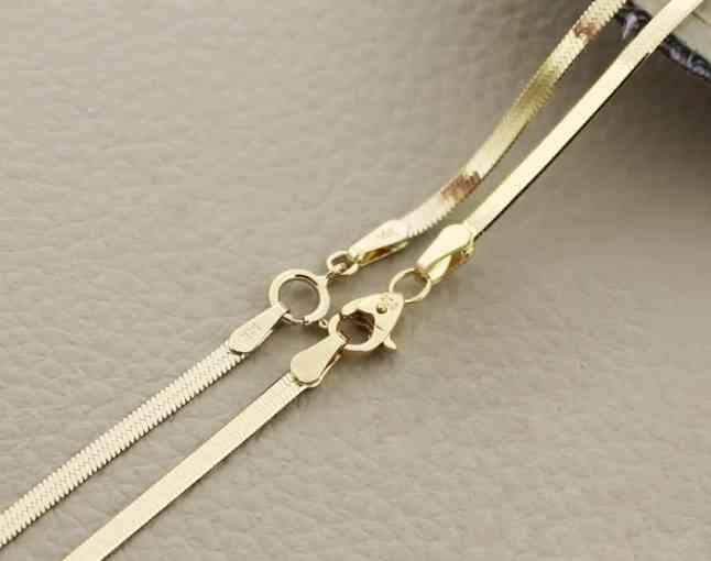 蛇骨鏈外形如同蛇一般排列緊密,經(jīng)過拋光的工藝,看起來光滑透亮。蛇骨鏈的垂直感和線條感都很突出,這樣的黃金鏈條款式適合搭配一些相對簡單的吊墜。不過蛇骨鏈有一個缺點,就是容易折斷,生活中需要注意保養(yǎng)和愛護(hù)。