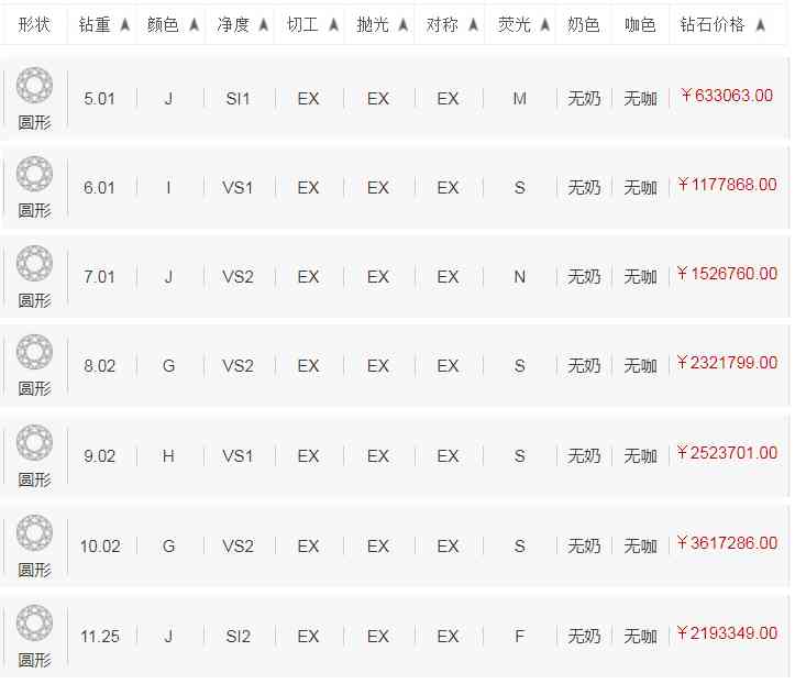 鴿子蛋鉆石價(jià)格表