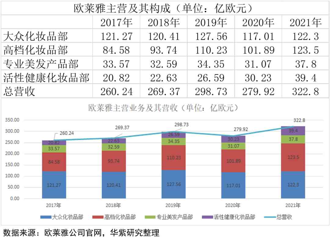 華熙生物與歐萊雅另外一個(gè)比較相似的點(diǎn)在于他們均采用更多元化的布局,而不局限于某一領(lǐng)域。歐萊雅主要是“品牌+營(yíng)銷”的商業(yè)模式,橫向滲透到化妝品終端市場(chǎng)的各個(gè)領(lǐng)域,包括大眾化妝品、高檔化妝品、專業(yè)美發(fā)產(chǎn)品以及活性健康化妝品。這樣的好處是即使在市場(chǎng)風(fēng)向發(fā)生變化時(shí),某部門業(yè)務(wù)營(yíng)收也會(huì)減少,但其他部門營(yíng)收的快速增長(zhǎng)能夠使得最終的營(yíng)收呈現(xiàn)出一個(gè)增長(zhǎng)的狀態(tài)。