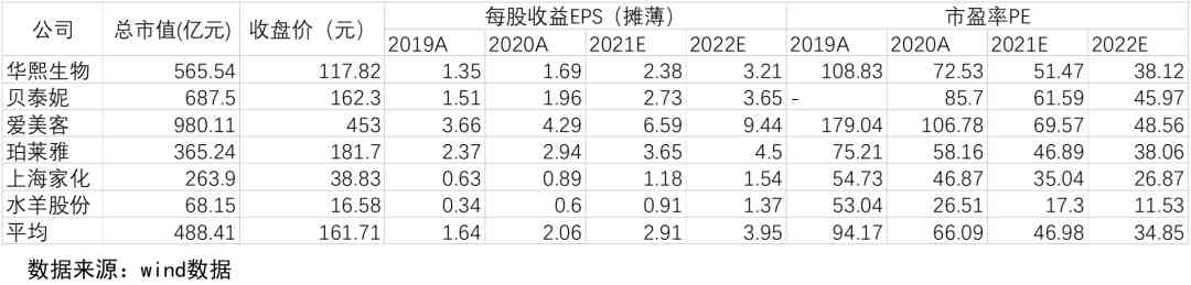 我們預(yù)計(jì)2021-2013年公司將會(huì)實(shí)現(xiàn)主營(yíng)業(yè)務(wù)收入49.47億元、64.87億元、82.18億元,同比增長(zhǎng)87.9%、31.1%、26.7%;對(duì)應(yīng)歸母凈利潤(rùn)為7.82、11.44、14.71億元,同比增長(zhǎng)21.1%、46.3%、28.6%;對(duì)應(yīng)的EPS為1.63、2.38、3.06,市盈率為75.2、51.4、40.0。同時(shí)我們參考同行業(yè)可比公司的估值,將華熙生物的目標(biāo)價(jià)定在137.67-159.40之間。