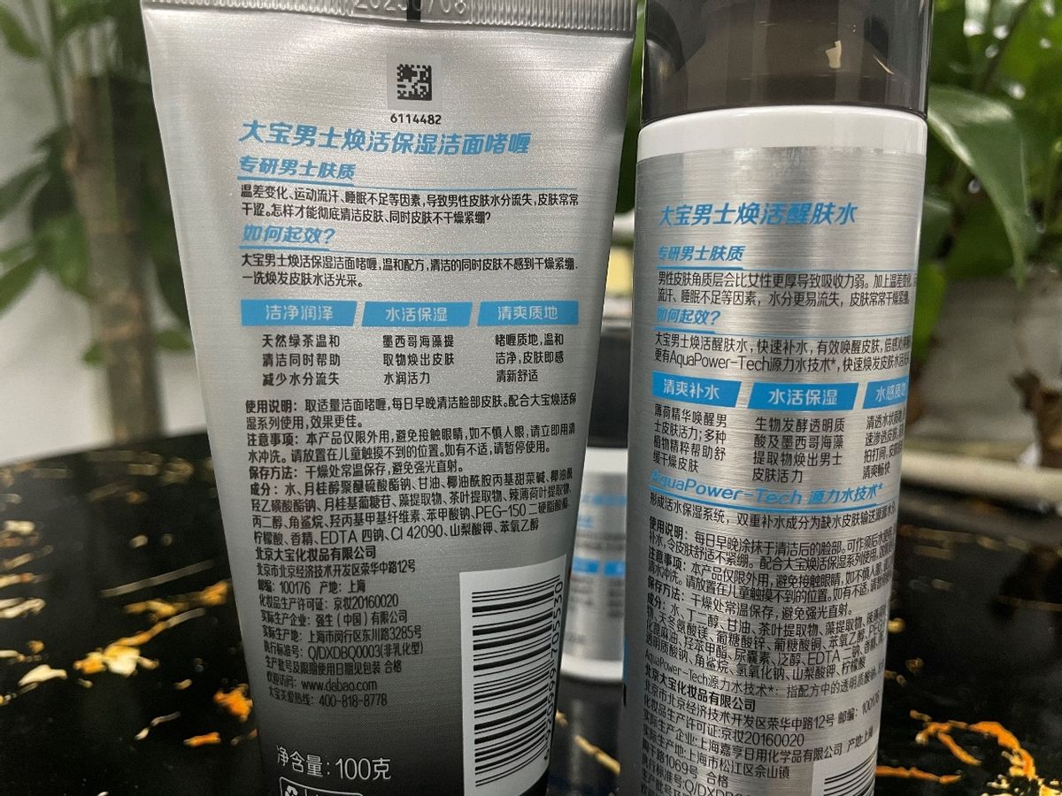而且你別看大寶這個護膚套裝很便宜,它的成分用料可是一點都不將就。我專門去查了一下,這個套裝里的醒膚水和保濕露里面,居然還特別添加了角鯊烷和海藻精華!