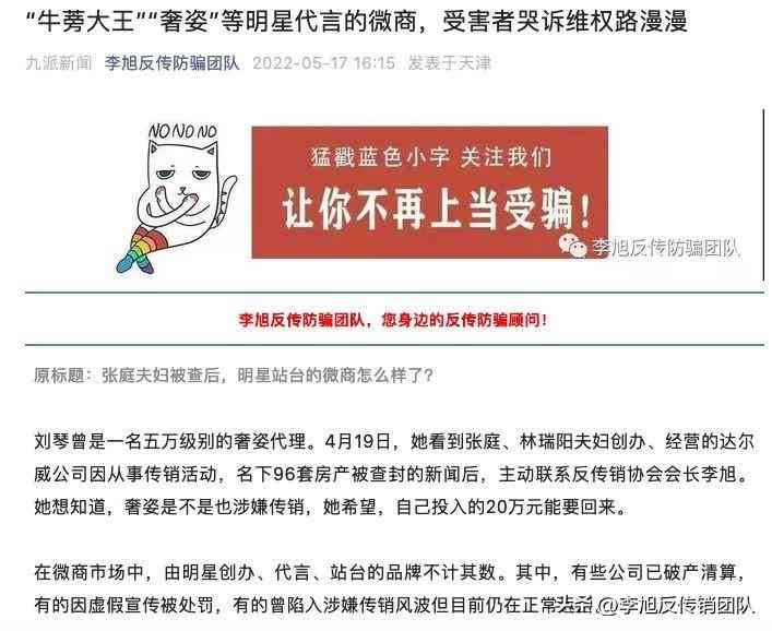 最后,李旭反傳防騙團(tuán)隊(duì)再次呼吁大家,一定不要相信一部手機(jī)快速暴富、短視頻快速暴富、寫文案快速暴富,躺平也能暴富等傳銷詐騙局,一定要明白,所有的事情必須是踏踏實(shí)實(shí)的努力工作,努力付出,才能獲得正常的穩(wěn)定收入。對(duì)于奢姿傳銷事件的進(jìn)展,李旭反傳防騙團(tuán)隊(duì)也將會(huì)持續(xù)關(guān)注。