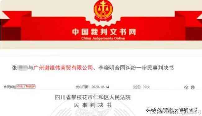 就在2020年10月,四川省攀枝花市仁和區(qū)法院在中國(guó)裁判文書網(wǎng)公布了,關(guān)于奢姿微商代理商起訴謝維偉公司和上線代理的案件的民事判決書,法院判決,被告廣州謝維偉商貿(mào)有限公司返還原告張某交納的40000元款項(xiàng)。