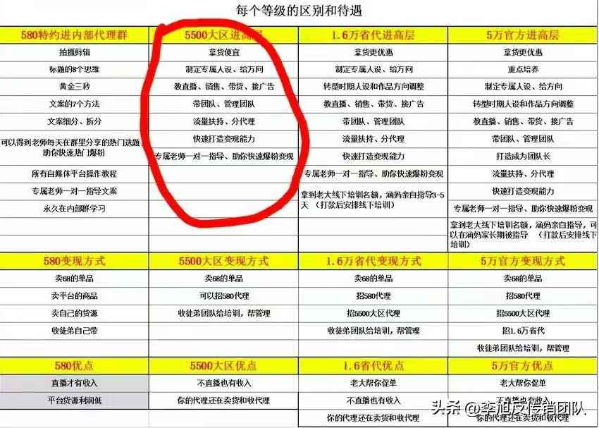通過對(duì)比,可以發(fā)現(xiàn),奢姿的4個(gè)價(jià)格代理標(biāo)準(zhǔn)仍然不變,還是580元,5500元,1.6萬(wàn)元,5萬(wàn)元,40萬(wàn)元,以及上線不封頂為主。就是內(nèi)容上有所變化,從之前的彩妝和護(hù)膚產(chǎn)品,轉(zhuǎn)向了培訓(xùn)文案和打造短視頻暴富為主。