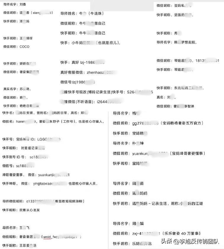 根據(jù)求助者的反饋,李旭反傳防騙團(tuán)隊(duì)整理了一部分的奢姿團(tuán)伙的快手行號(hào)和微信賬號(hào)進(jìn)行曝光,希望廣大民眾,更加注意以及防范他們。
