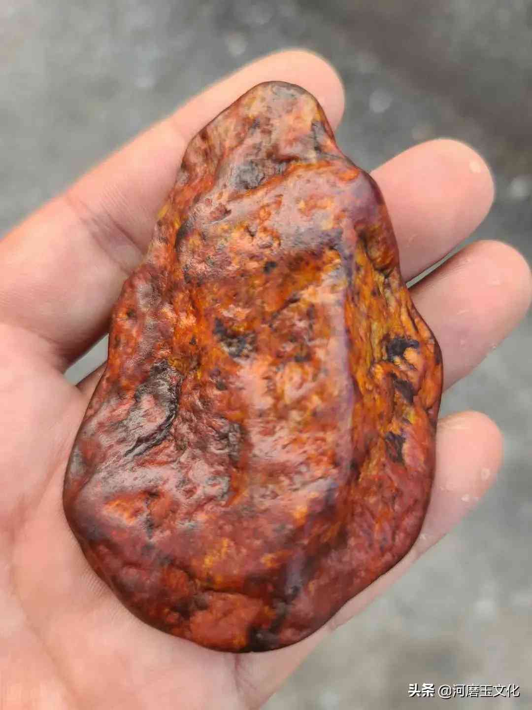 億萬年前的自然條件下山料落入河流中經(jīng)過歲月的洗禮,外表形成了玉皮,大塊頭有上噸重,小塊有幾克重,外表紅皮薄浸極為漂亮。