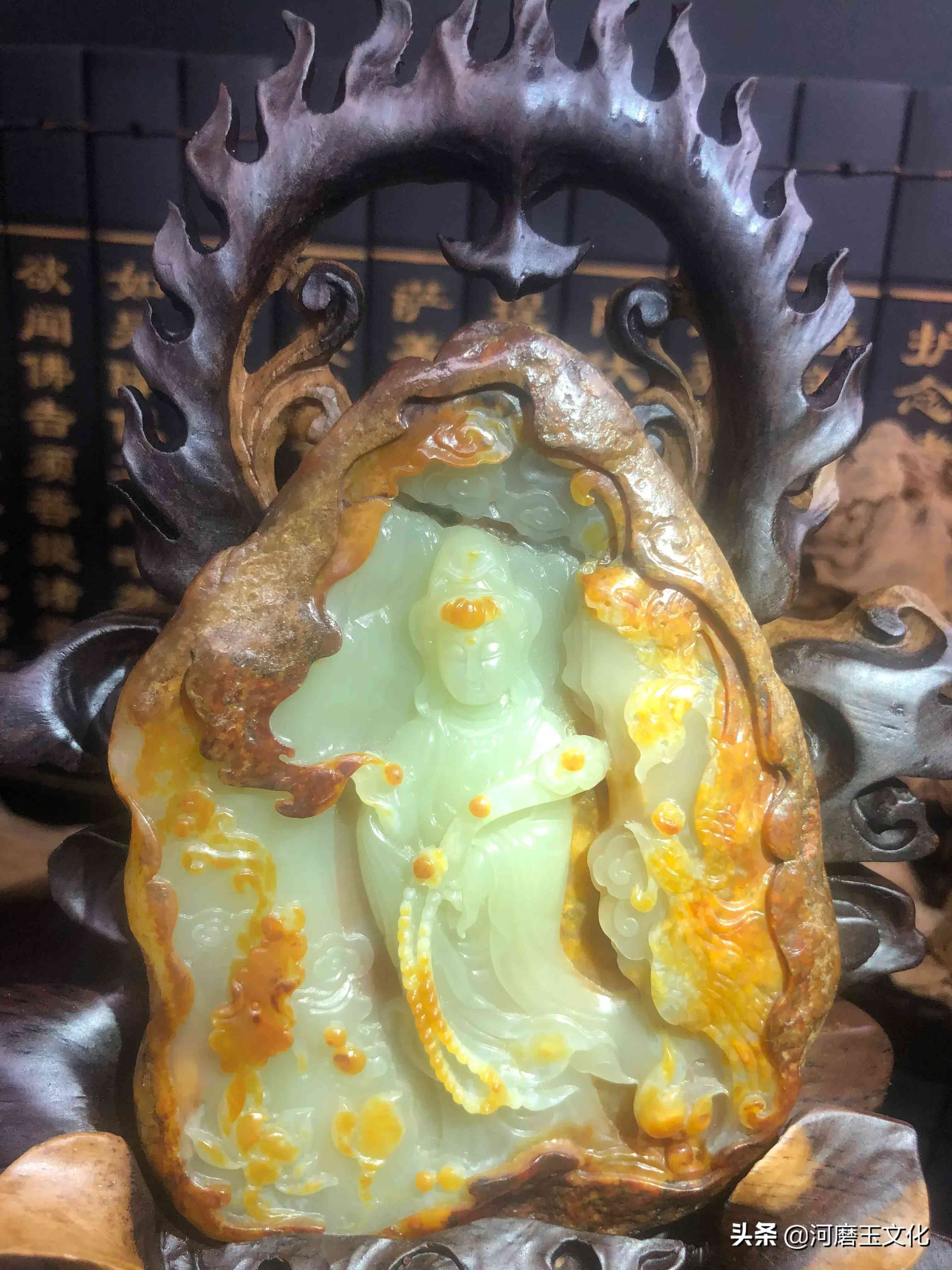 在河磨玉中有一句話是細(xì)皮出好玉,好皮出自好玉,前幾年開始有很多玉友追求河磨玉中的上等黃皮料雕件。