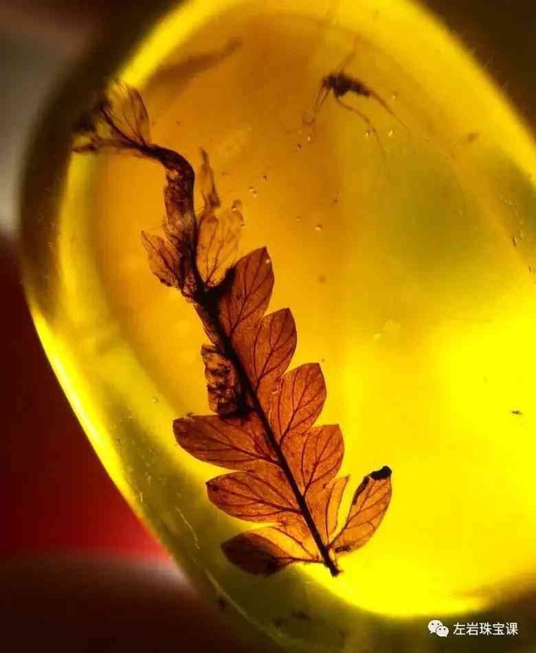 透明-微透明,包含有植物(如花、葉、根、莖、種子等)的琥珀稱為植物珀。