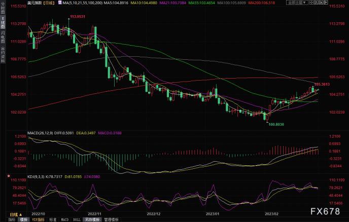 美元指數(shù)周二收漲0.33%,報(bào)104.99,2月份累計(jì)上漲2.8%。