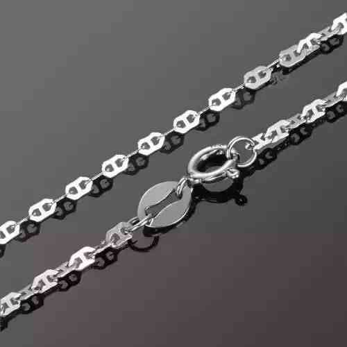 蛇骨鏈?zhǔn)菣C(jī)織鏈的一種,整體外形就像蛇的身體,光華細(xì)膩,幾乎看不到接縫處。但是這種太致密了,一旦斷了,就不太好修補(bǔ)了。