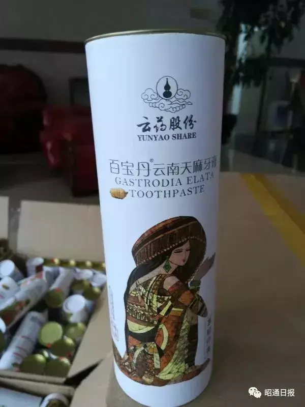 云南邦銘提供的資料顯示:百寶丹云南天麻牙膏內(nèi)含昭通小草壩烏天麻、滇黃精、山藥、白芨提取物天然活性成分以及竹葉黃酮防腐劑,應(yīng)用了云南云藥與以色列合作研發(fā)的高檔軟性磨料“菱形磷酸氫鈣”作為牙膏摩擦劑,其純天然植物本色帶給消費者口感好、治療效果好的使用體驗;在包裝設(shè)計上,每款產(chǎn)品底紋設(shè)計使用了中國著名重彩版畫家陳永樂的系列版畫作品,賦予了產(chǎn)品濃厚的云南民族風格和人文氣息。