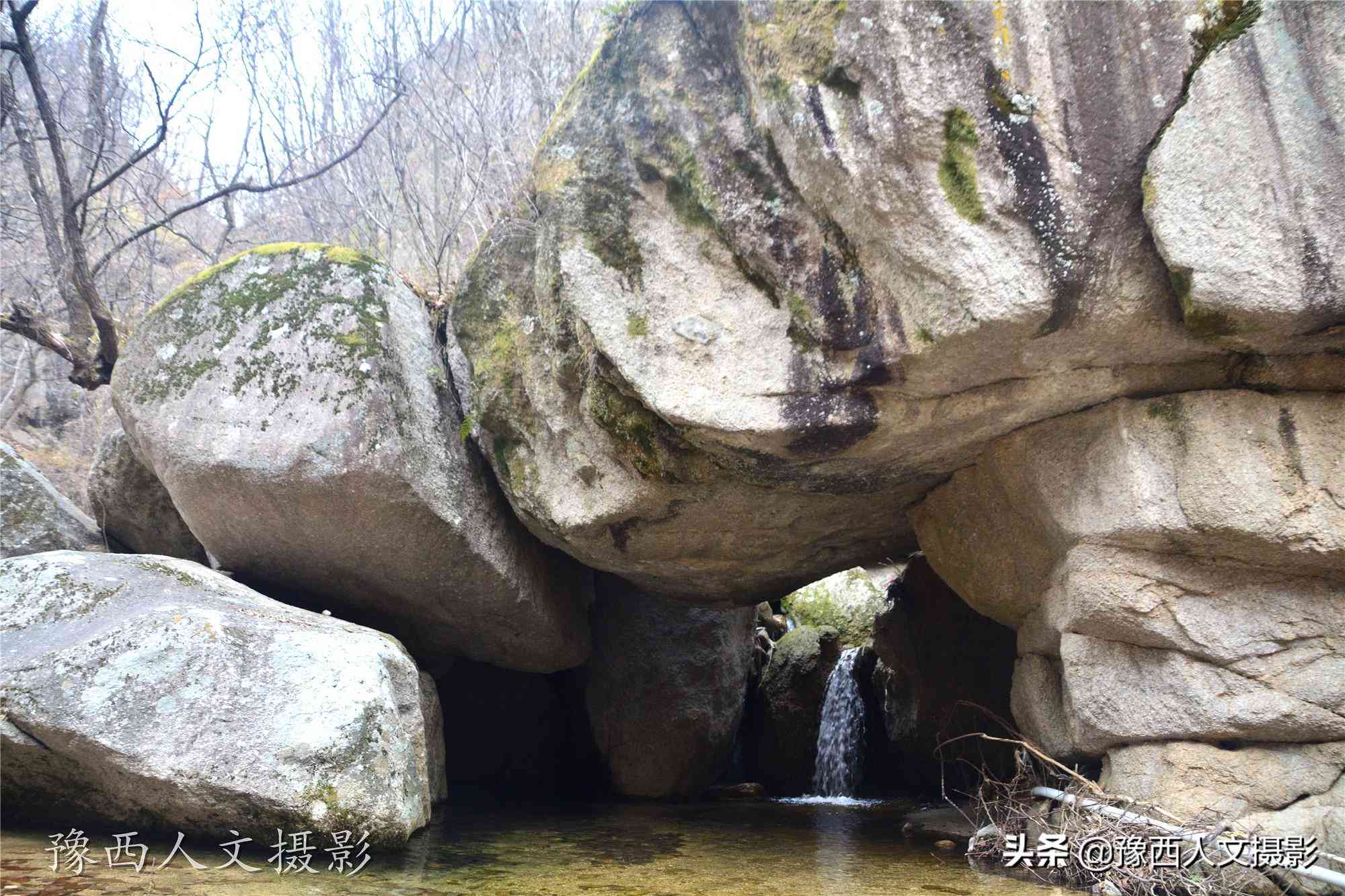 溪水從幾塊巨石縫隙里面流出來(lái),這兒是“龍?zhí)丁薄2恢肋@些名字是景區(qū)初步開(kāi)發(fā)的時(shí)候取的,還是山里人根據(jù)形狀隨便叫的,有些還挺貼切。如果沒(méi)有這些刻有名字的提示,游客可能會(huì)匆匆而過(guò),看了提示之后,再仔細(xì)端詳打量這些景觀,就不得不感嘆大自然造物的神奇。