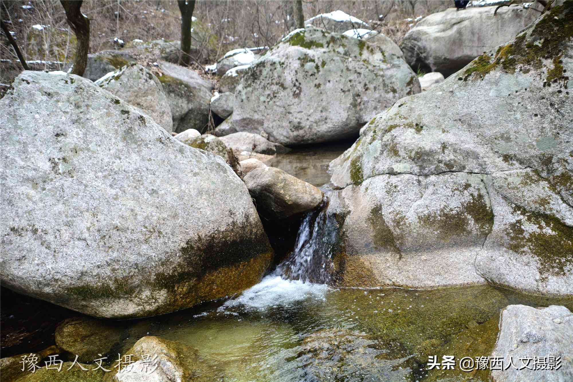向他們?cè)儐?wèn)山谷里是否還有人家,得到的消息是沒(méi)有了,再往前走,連路也沒(méi)有了,山上好多雪,不好走。大哥告訴作者:往里面曾經(jīng)有個(gè)報(bào)廢的黃蠟石礦,以前有小路,能過(guò)三輪車,礦開(kāi)采完了之后,路也沒(méi)人管了,都被樹(shù)梢子、荒草遮蓋,慢慢的,也就找不到路了。要想看到伊河源頭,得早上來(lái),走三四個(gè)小時(shí),到半山腰,亂石堆里流出來(lái)一股泉眼,那應(yīng)該是就是源頭。