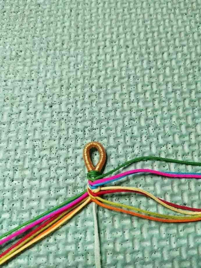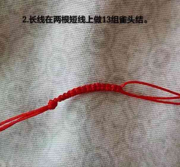 5、開始編“單平結(jié)”,發(fā)現(xiàn)忘了拍平結(jié)過程,就借了張照片看制作過程。