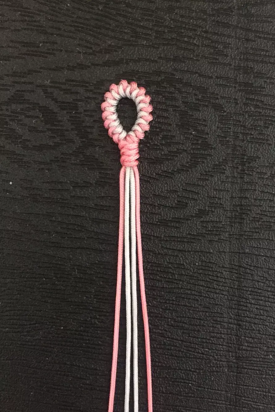 4、做好“金剛結(jié)”后把中心軸2根2根分開,粉色和灰色各一邊。