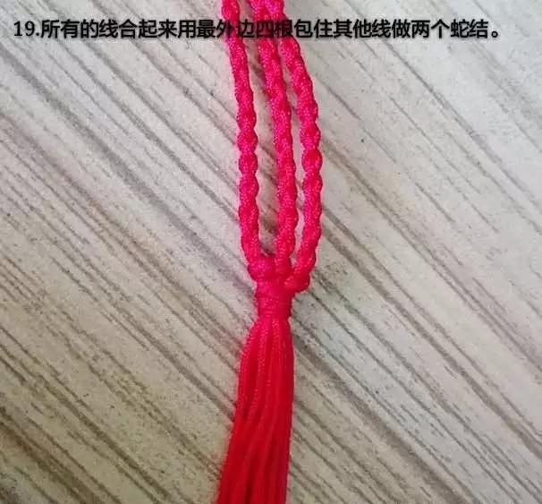 3、“蛇結(jié)”做好后收口做3個“金剛結(jié)”。