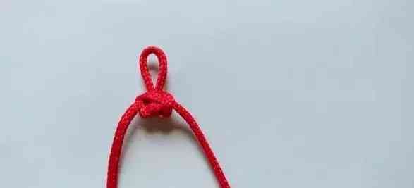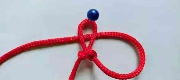 2、右側(cè)紅繩逆時針繞個圈,壓住左線。