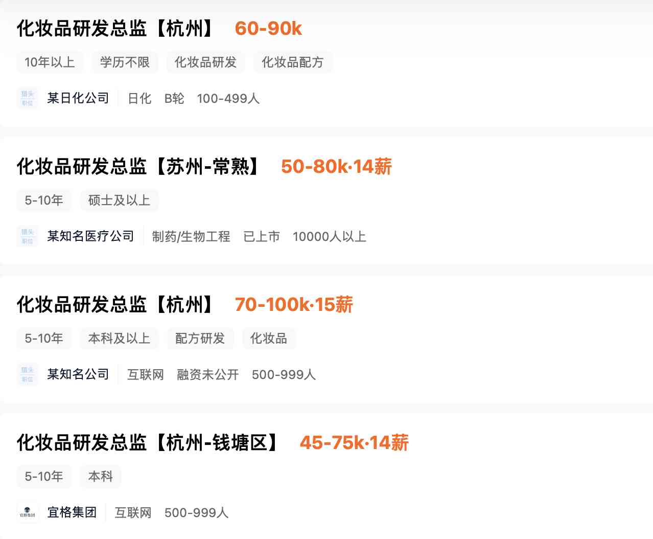 多個(gè)本土美妝企業(yè)為研發(fā)總監(jiān)開出了近百萬元年薪,其中不乏一些新銳美妝品牌。