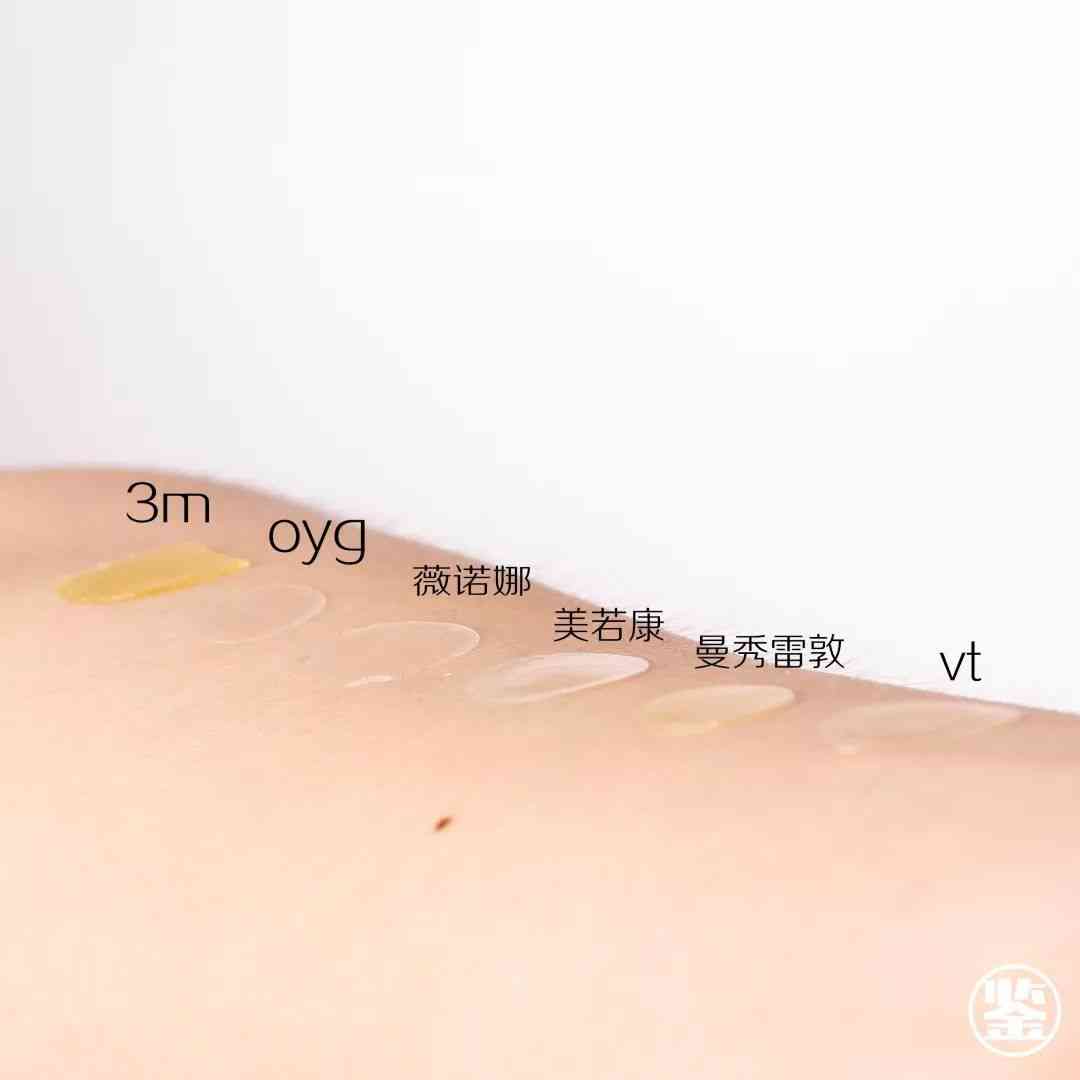 ◎ 肉眼可見的是oyg(oliveyoung的縮寫,后面都用這個代替)、薇諾娜和vt、美若康四種幾乎是一樣的,但稍微有一點點區(qū)別。3m確實超級厚,之后曼秀雷敦。