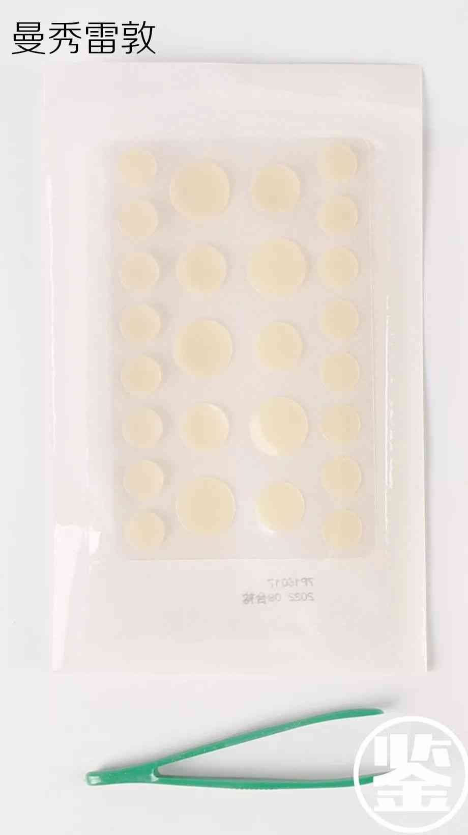 ◎ 但是曼秀雷敦是沒有設(shè)計中間線的,但是設(shè)計的大小不一的痘痘貼,外加一個架子,其實不太好夾下來黏性就很強(qiáng)。