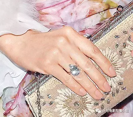 在金雞百花獎(jiǎng)?lì)C獎(jiǎng)現(xiàn)場(chǎng),范冰冰就戴著這枚鉆戒現(xiàn)身,撩頭發(fā)的時(shí)候相當(dāng)閃耀,有報(bào)道說(shuō)這枚鉆戒達(dá)到20克拉!這戴的何止是鉆戒,有人說(shuō)直接把別墅戴手上了。
