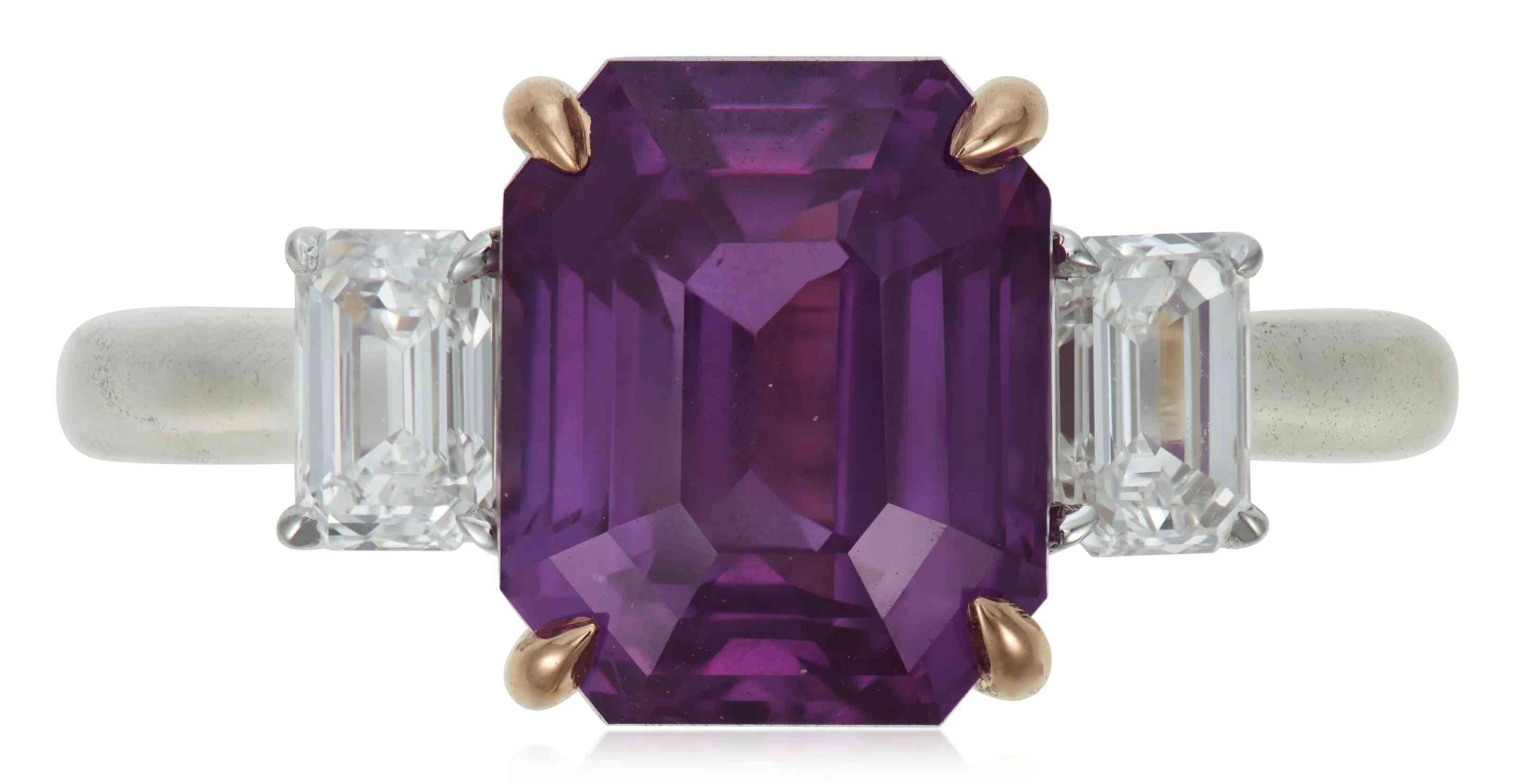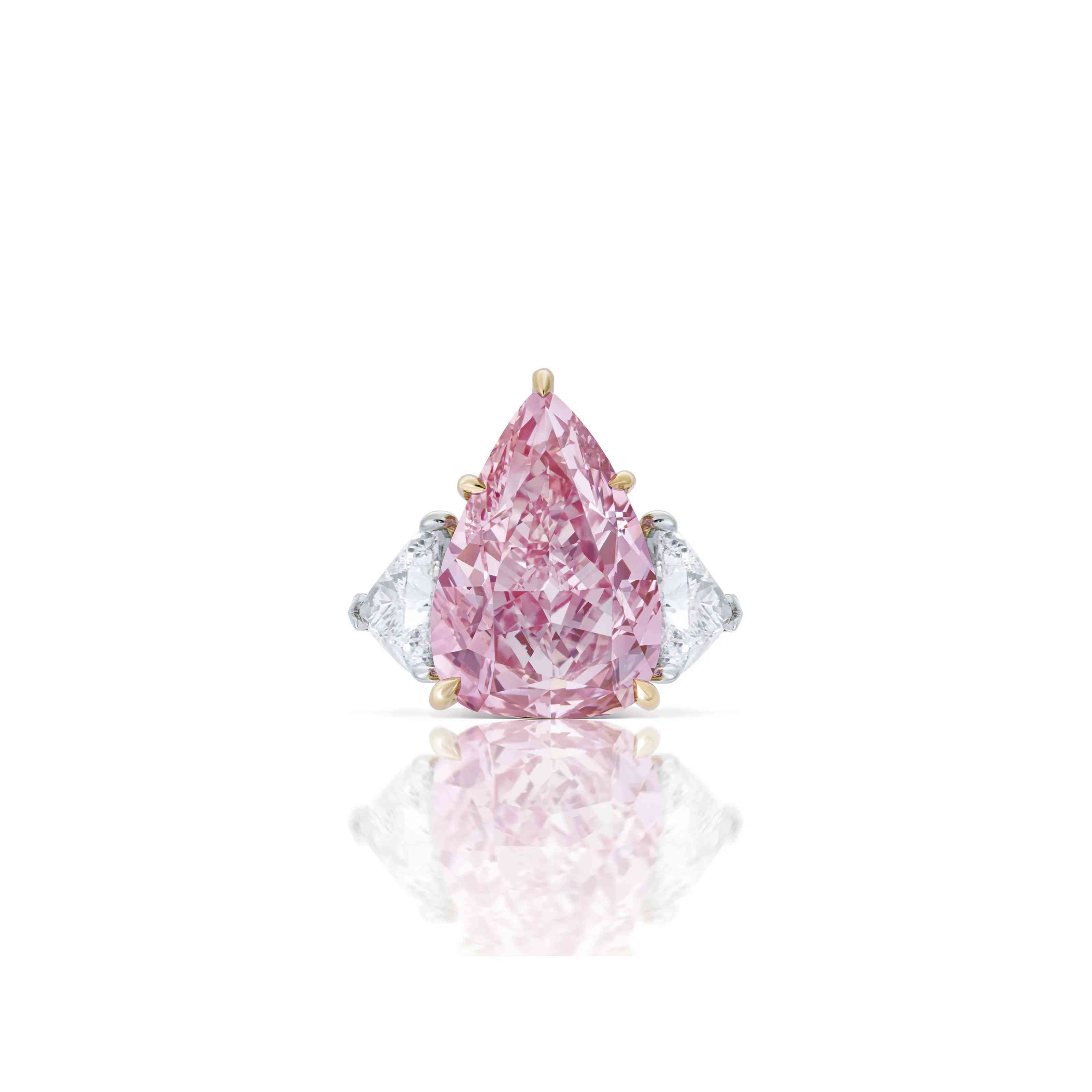 這顆粉紅鉆石兩邊各鑲有一顆純凈白鉆,配以18K玫瑰金和白金戒托。在香港拍賣時(shí),它以超過(guò)最高估價(jià)近三成的價(jià)格落槌,而這樣的結(jié)果也體現(xiàn)出亞洲市場(chǎng)對(duì)彩色鉆石的強(qiáng)勁需求。