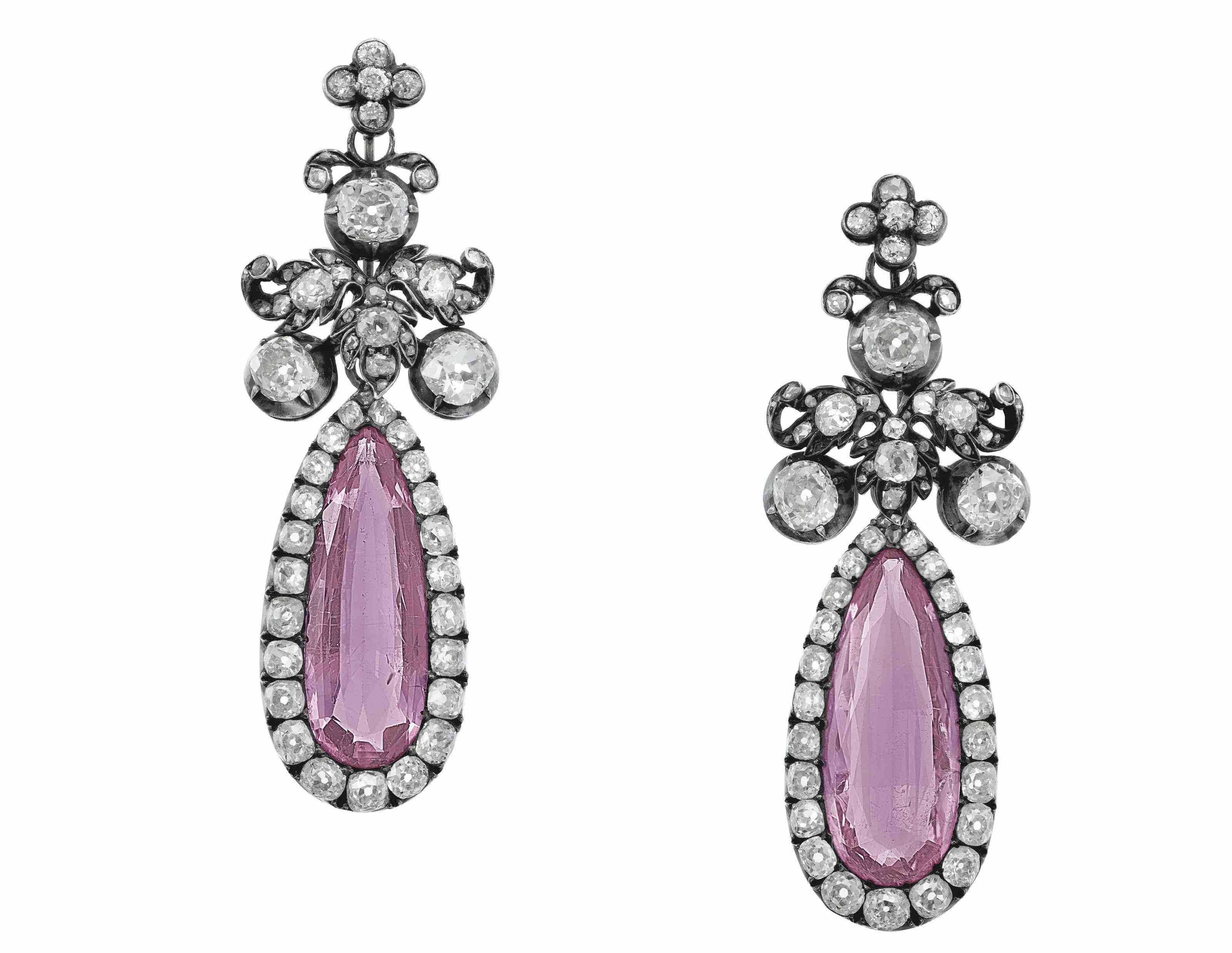 古董粉色黃玉和鉆石耳環(huán)