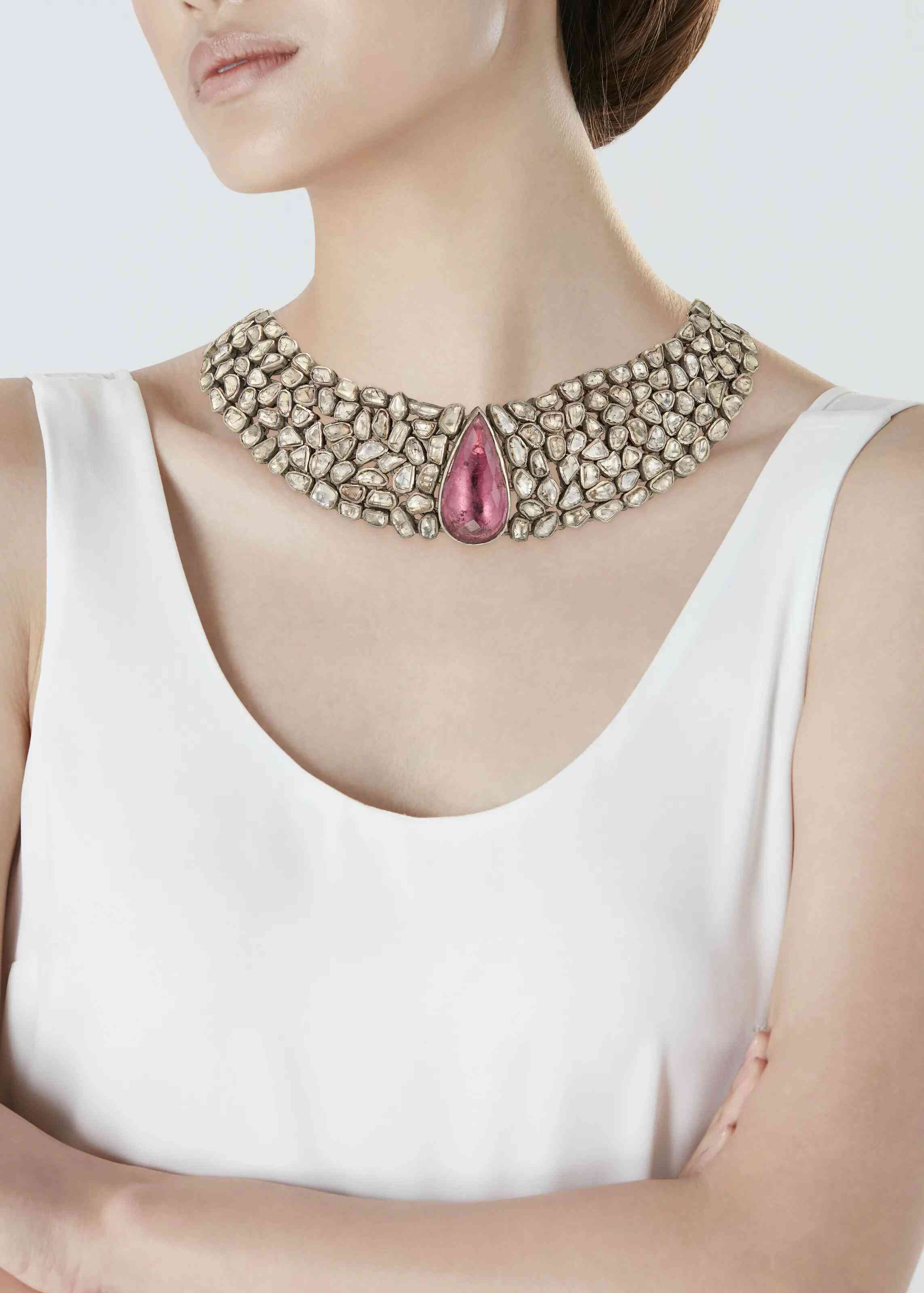 印度粉色碧璽鉆石項(xiàng)鏈