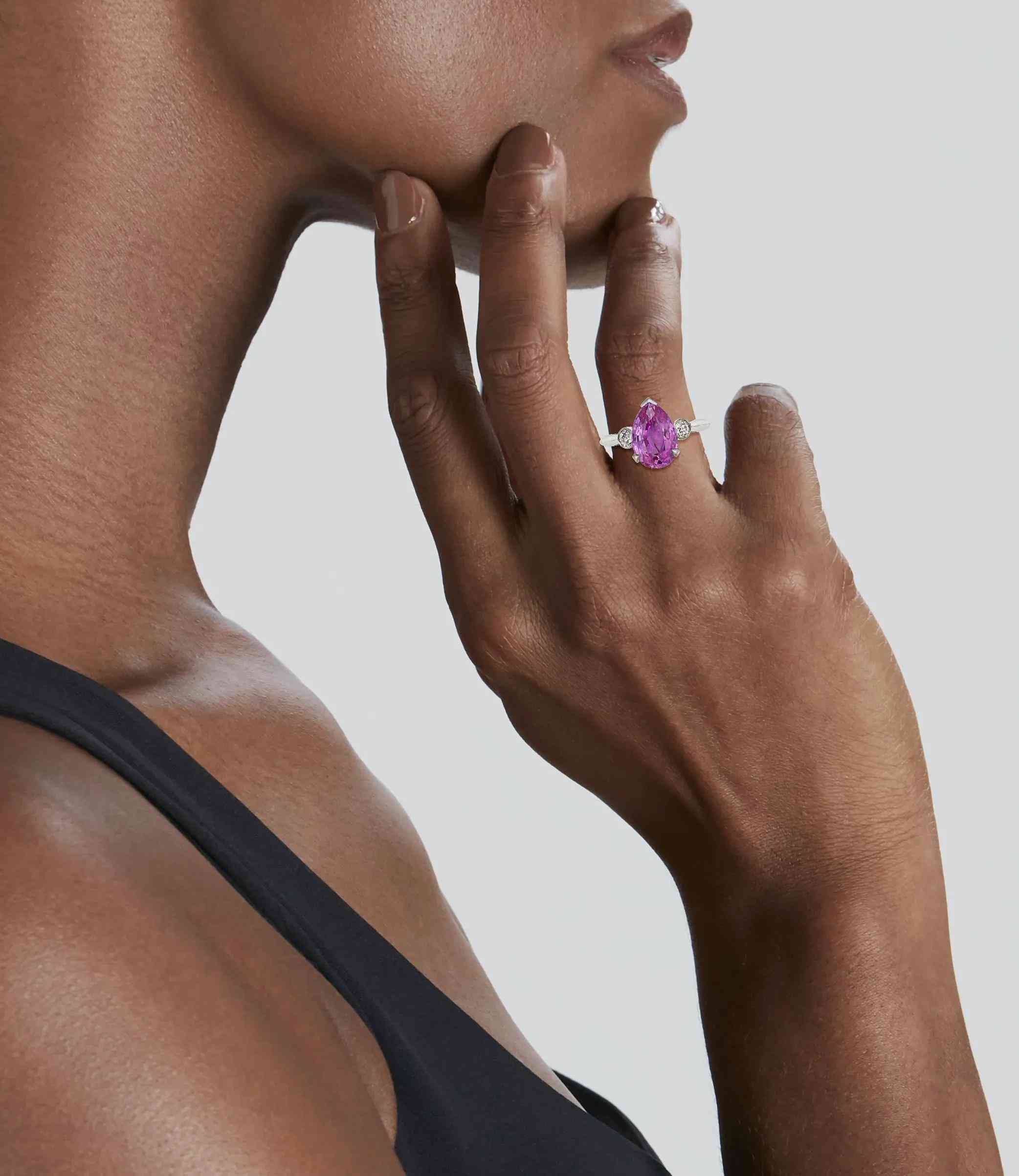 粉色梨形藍(lán)寶石戒指