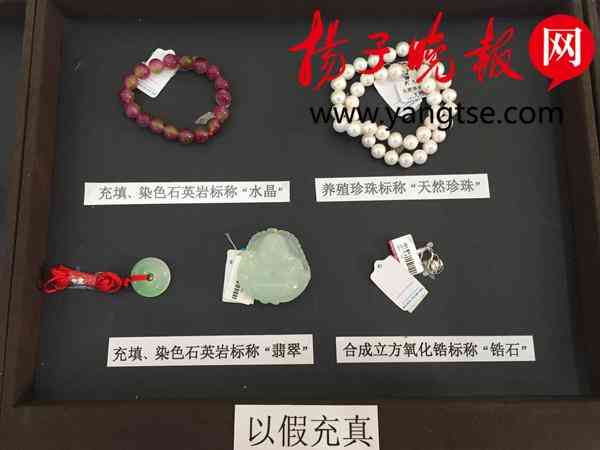 此次抽查中發(fā)現(xiàn)有9批次產(chǎn)品以假充真問題,比如用玻璃假冒碧玉、貓眼等天然寶石,或用合成寶石假冒天然寶石,還有用合成立方氧化鋯假冒天然鋯石、用養(yǎng)殖珍珠假冒天然珍珠等。此外還有用低檔寶石的人工處理品假冒天然寶石,如用充填、染色處理的石英巖假冒天然水晶、翡翠。除了以假充真,抽查中還發(fā)現(xiàn)有13批次產(chǎn)品以次充好,比如劣質(zhì)翡翠經(jīng)過漂白、充填或染色后,冒充高檔天然翡翠,用劣質(zhì)石英巖經(jīng)過染色后冒充天然石英巖等。