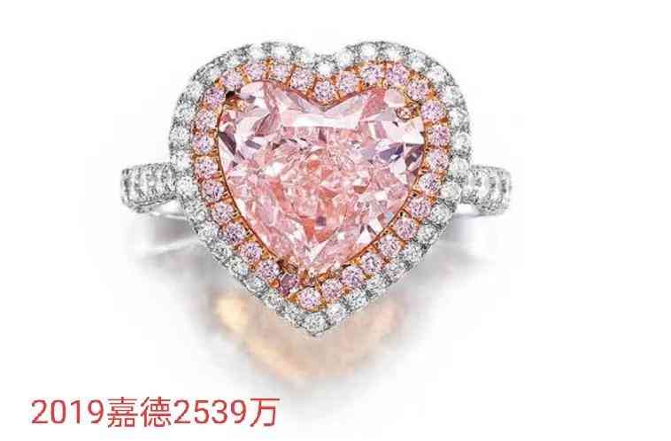 位列第七的是中國嘉德2019香港秋季拍賣會上成交的一枚嵌4.58克拉粉鉆的鉆石戒指,成交價為2539萬元。