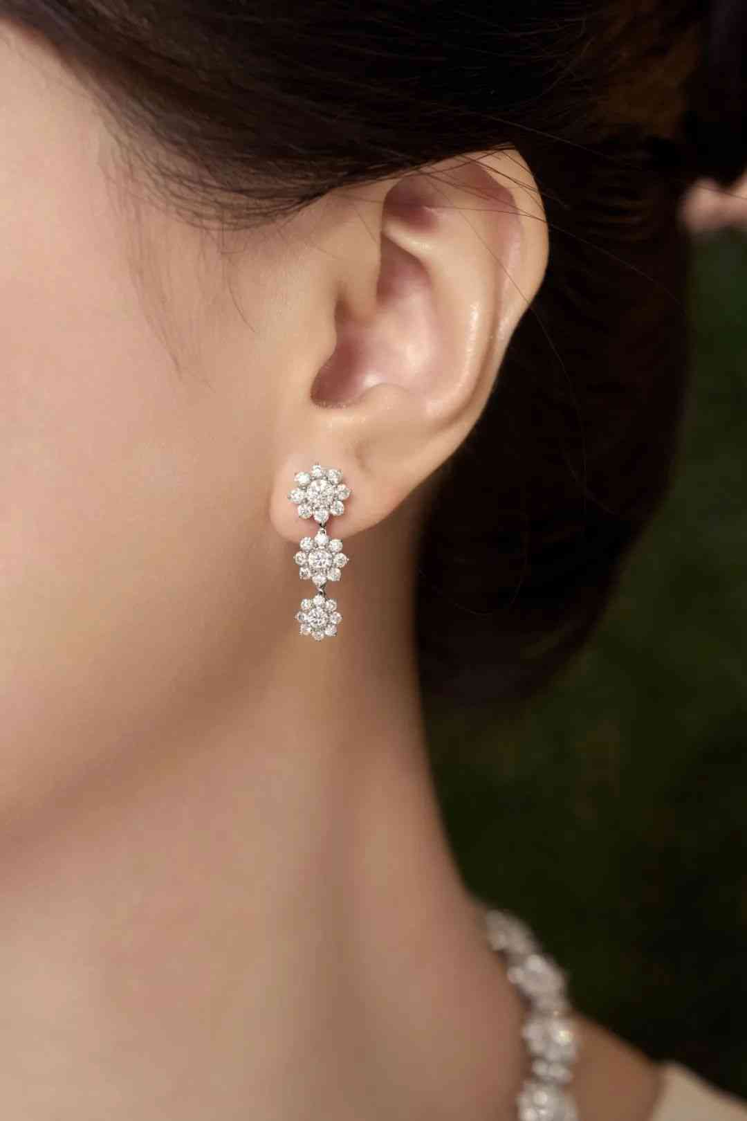 這款三蕊鉆滴耳環(huán)則更加小巧玲瓏,三朵大小漸變的向陽花,把明媚光彩凝聚在耳畔,還會隨著動作微微搖曳,十分靈動俏皮。
