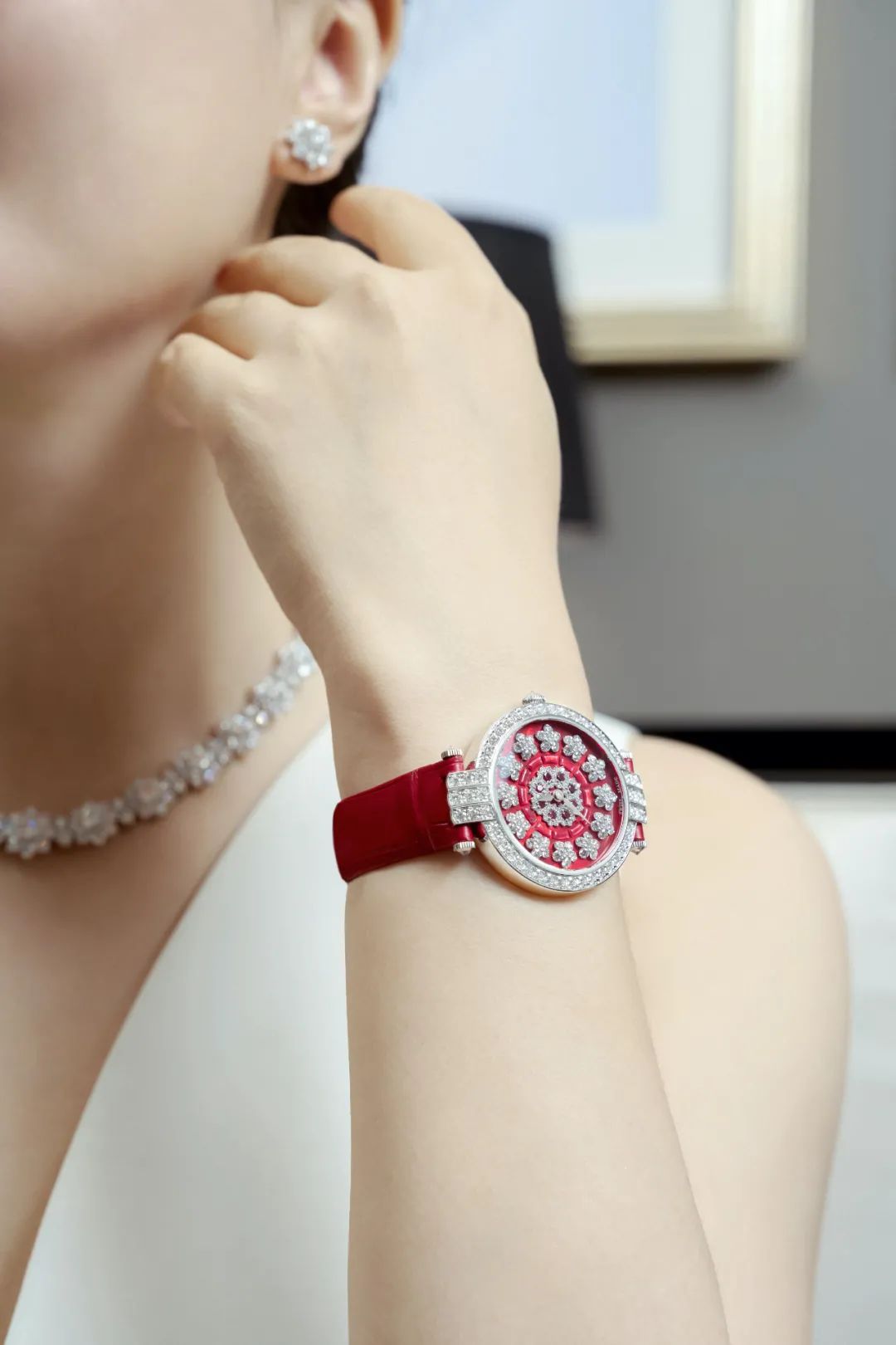 這款第五大道Avenue Classic系列Aurora腕表,和Winston Gates珠寶適配度很高。