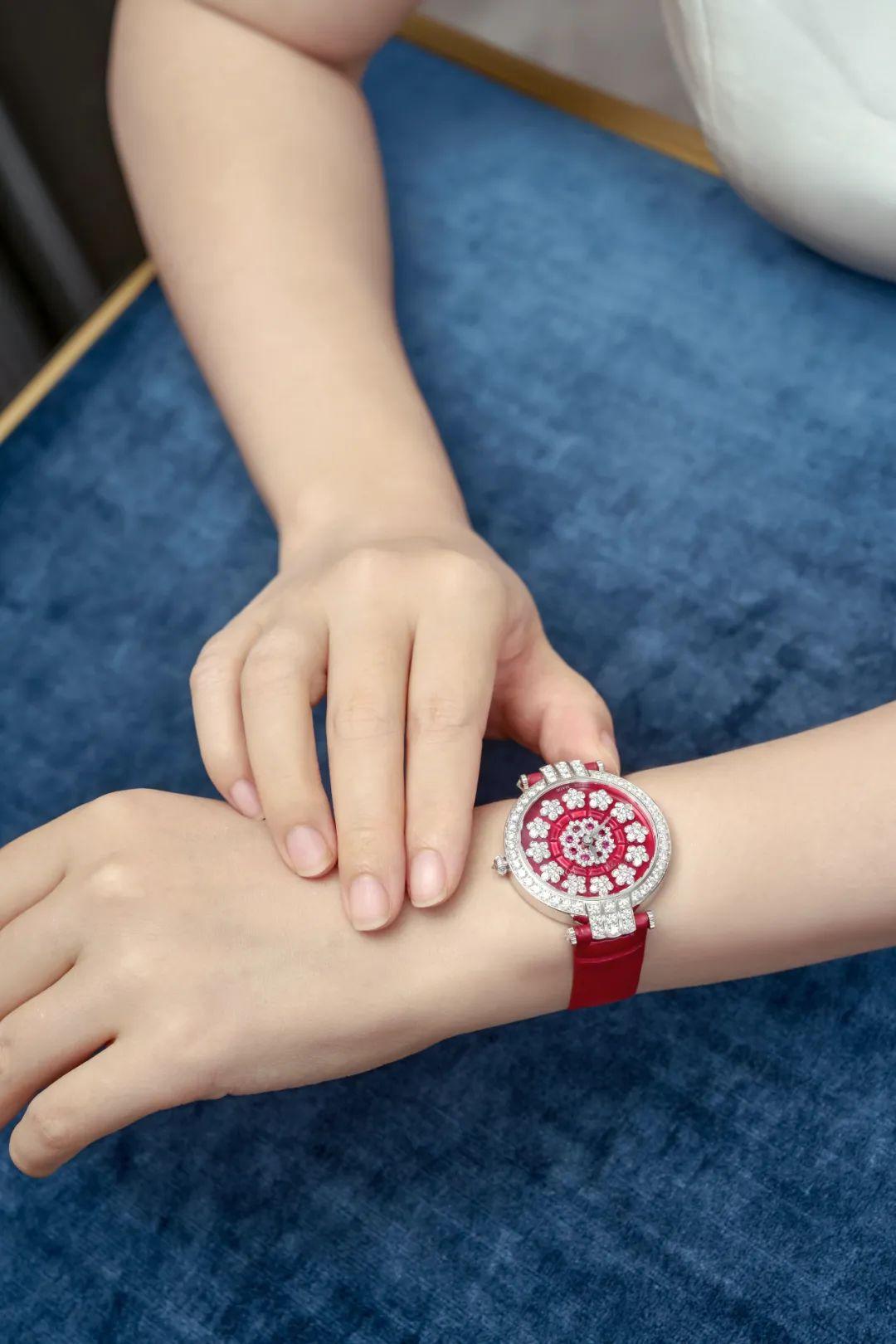 卓時Premier系列Sunflower腕表有紅藍兩款,每款僅限量發(fā)售30枚。在腕間吸睛度爆表,和Sunflower系列珠寶完美呼應,分分鐘就成為全身的點睛之筆。