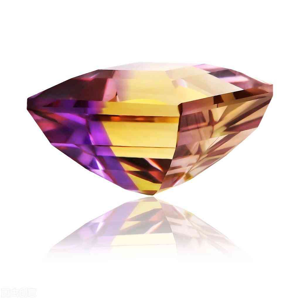 雙色水晶:紫色和黃色共存的一種水晶,紫色和黃色分別占據(jù)水晶一部分,二者交匯處有清晰的界限。