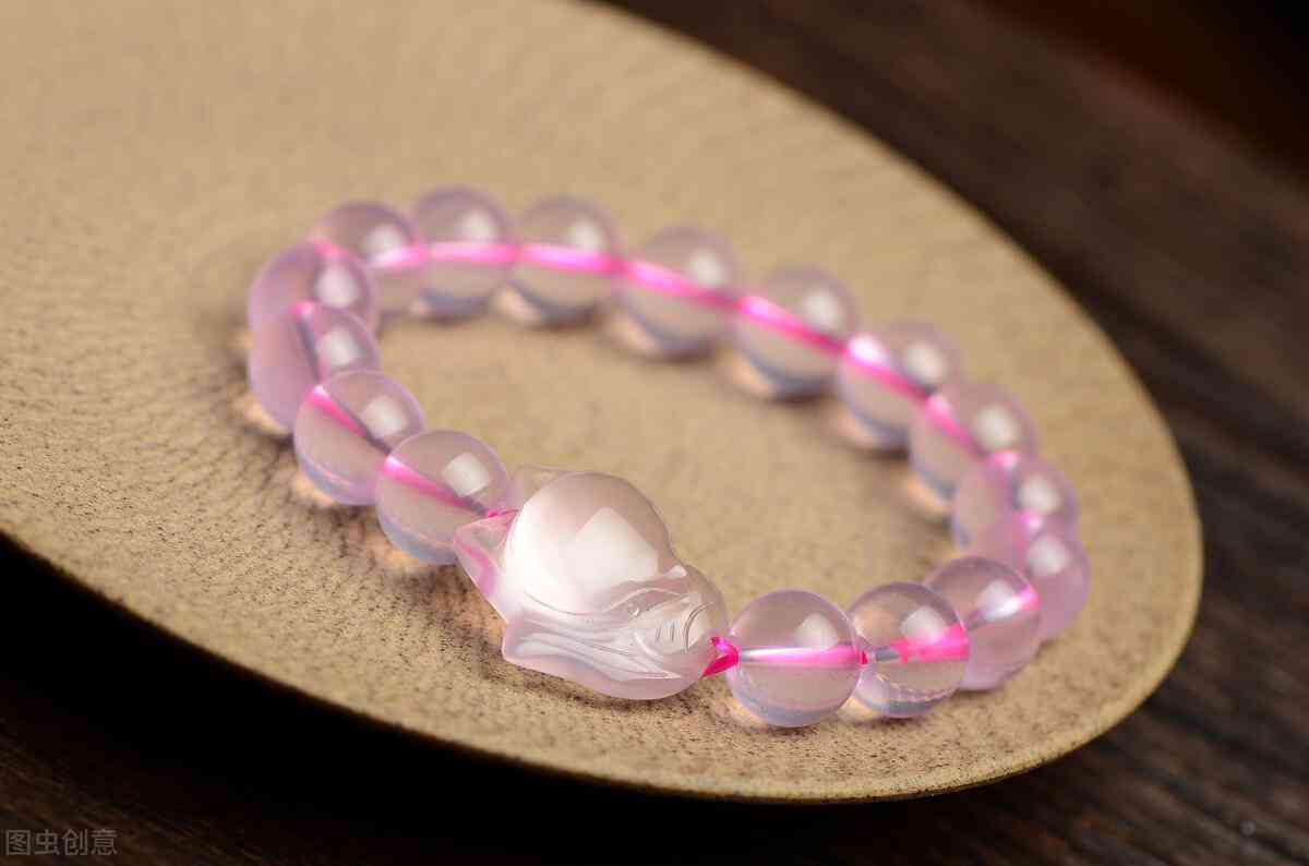 芙蓉晶:淡紅色的水晶,透明度較低,多為云霧狀,裂隙發(fā)育,常被雜質(zhì)充填,加熱后會(huì)褪色??涩F(xiàn)實(shí)投射星光。市場(chǎng)上的手串一般紅色繩子,加深其顏色。