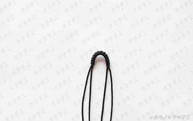 1、取兩根2.5米左右的線,在中間偏左一點的位置編一段蛇結,這個地方是用作扣眼,做多少個蛇結根據你珠子大小決定