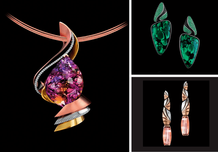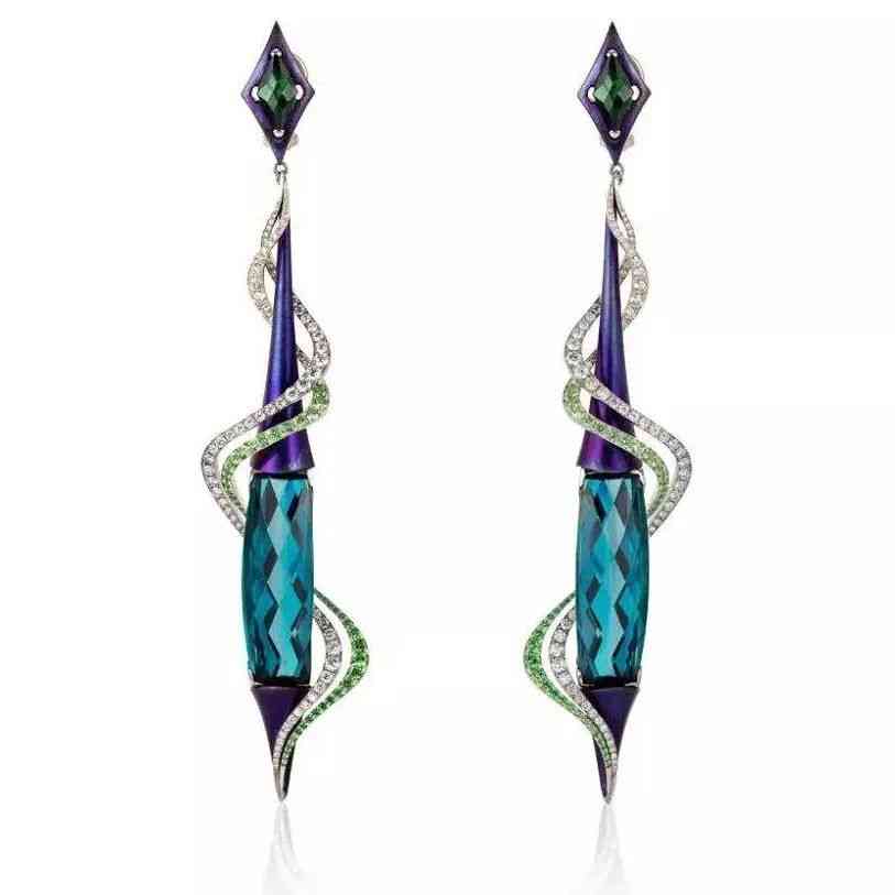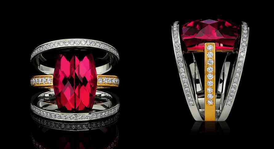 他的設(shè)計(jì)美學(xué)以?xún)?yōu)雅、現(xiàn)代的形式突出非凡的寶石。他精湛的工藝包括獨(dú)特的懸架支架和屢獲殊榮的激光結(jié)構(gòu),還在材質(zhì)上另辟蹊徑,開(kāi)發(fā)定制的黃金合金,讓黃金擁有了金色漸變的質(zhì)感,使珠寶作品更具有當(dāng)代設(shè)計(jì)的美學(xué)效果。