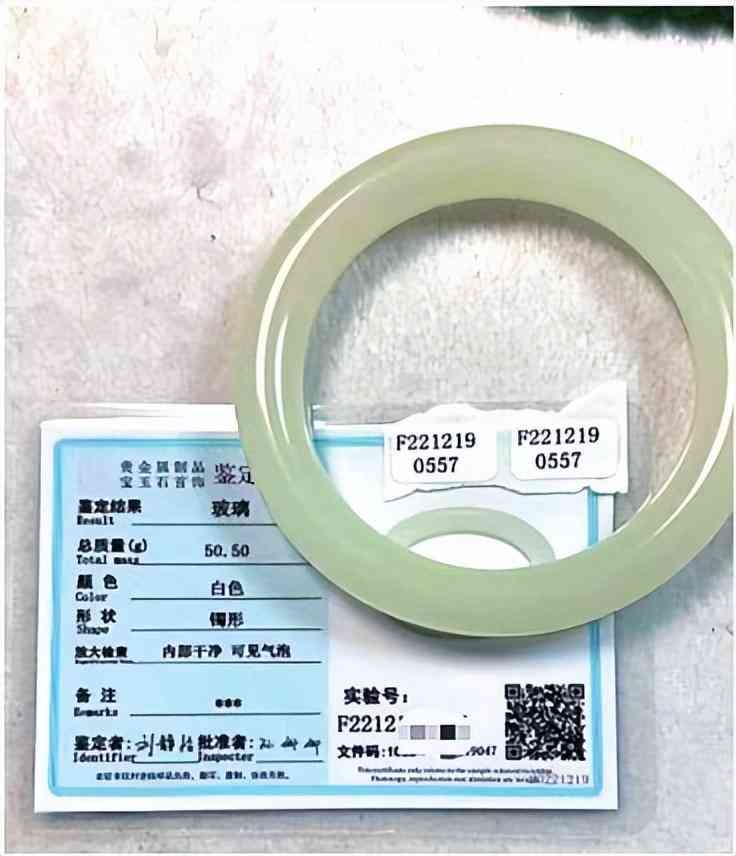 后經(jīng)過(guò)王女士推薦,徐女士將玉鐲送到鑒定機(jī)構(gòu),這款所謂的和田玉手鐲竟也是玻璃制品。
