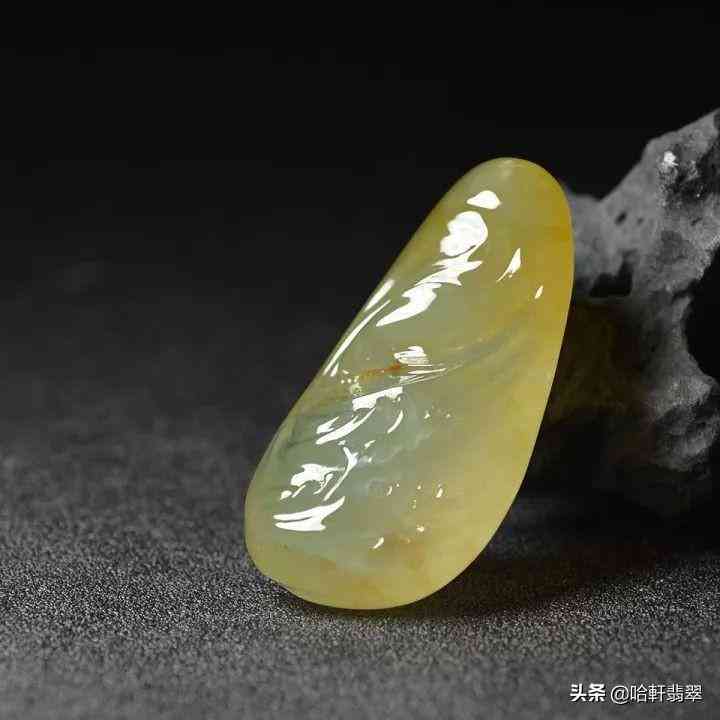 天然的黃翡(上圖),可以看到其內(nèi)部的結(jié)晶顆粒和翠性。