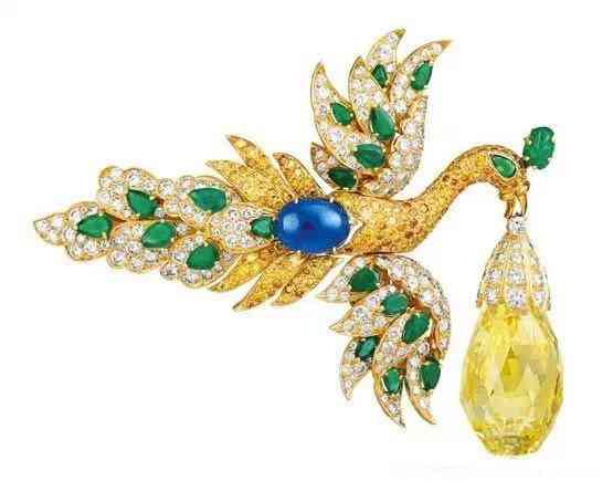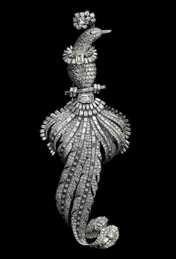 天堂鳥(niǎo)胸針, 1948年卡地亞巴黎特別訂制,超大尺寸(20.20cm)這枚胸針成為戰(zhàn)后最別具一格的高級(jí)珠寶作品。