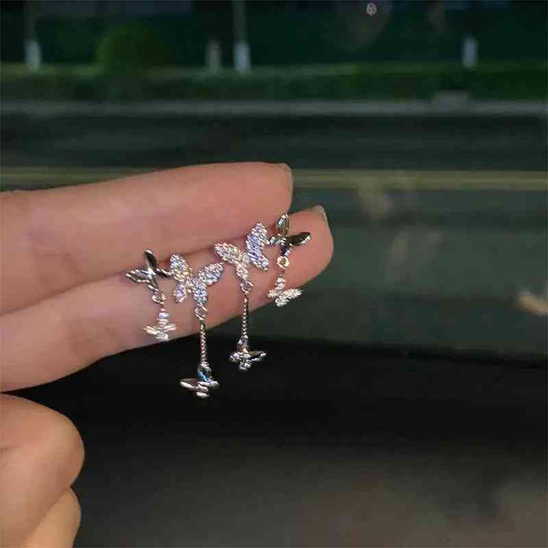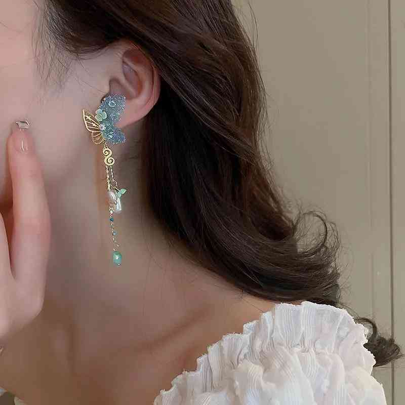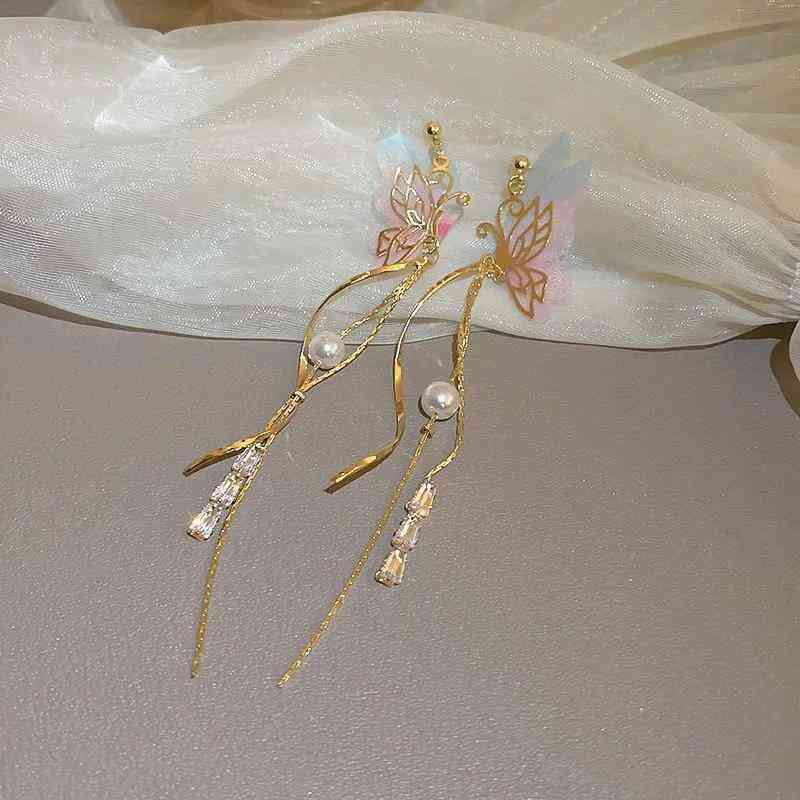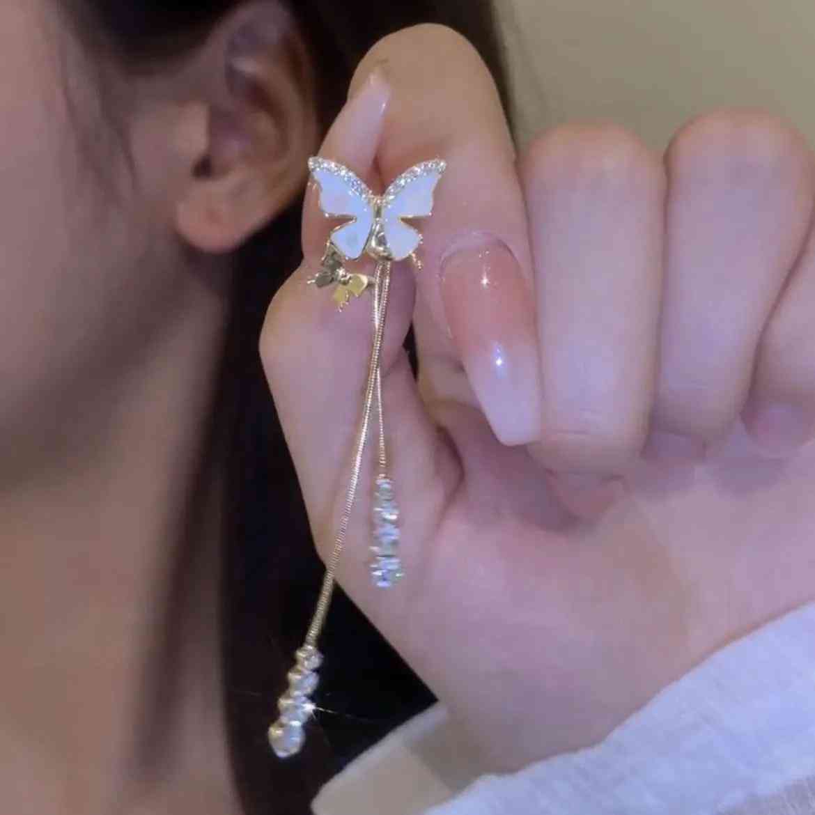 蝴蝶鋯石珍珠耳環(huán)韓國小清新時(shí)尚設(shè)計(jì)感小眾長款流蘇耳墜氣質(zhì)耳環(huán)